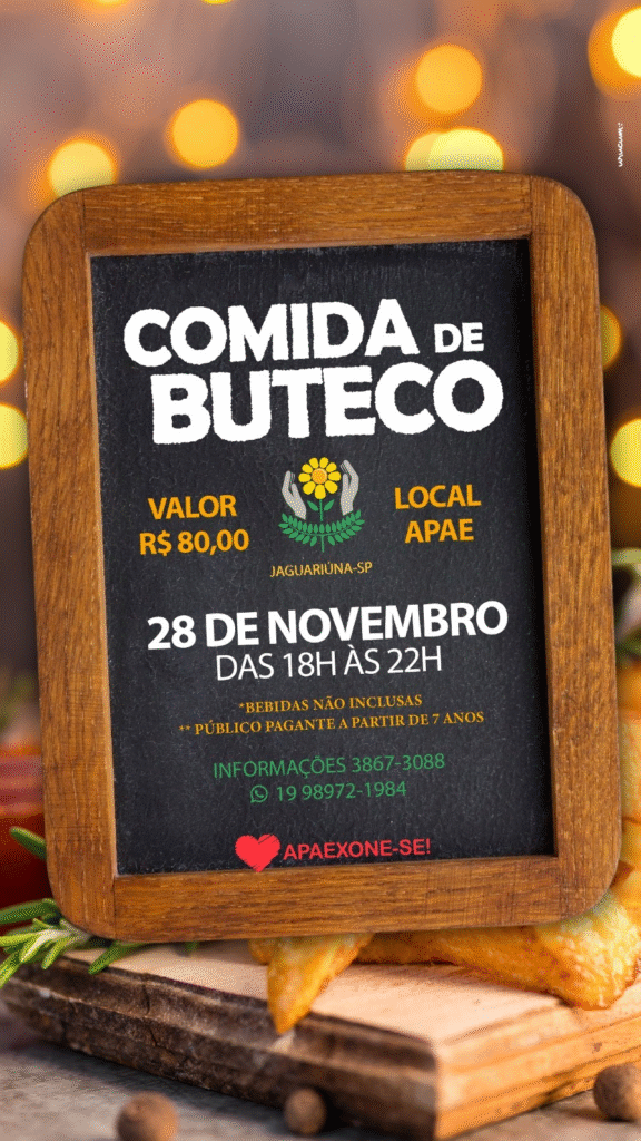 A APAE de Jaguariúna está em clima de festa. No próximo dia 28 de novembro, a instituição realiza o evento “Comida de Buteco da APAE”, uma noite especial repleta de música, comida boa e muita alegria, marca registrada das celebrações promovidas pela entidade.