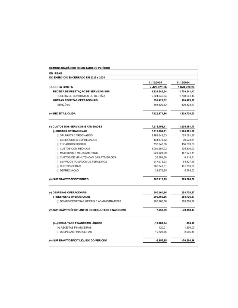 Demonstrativo do Resultado do Exercício de 2024 e 2025.