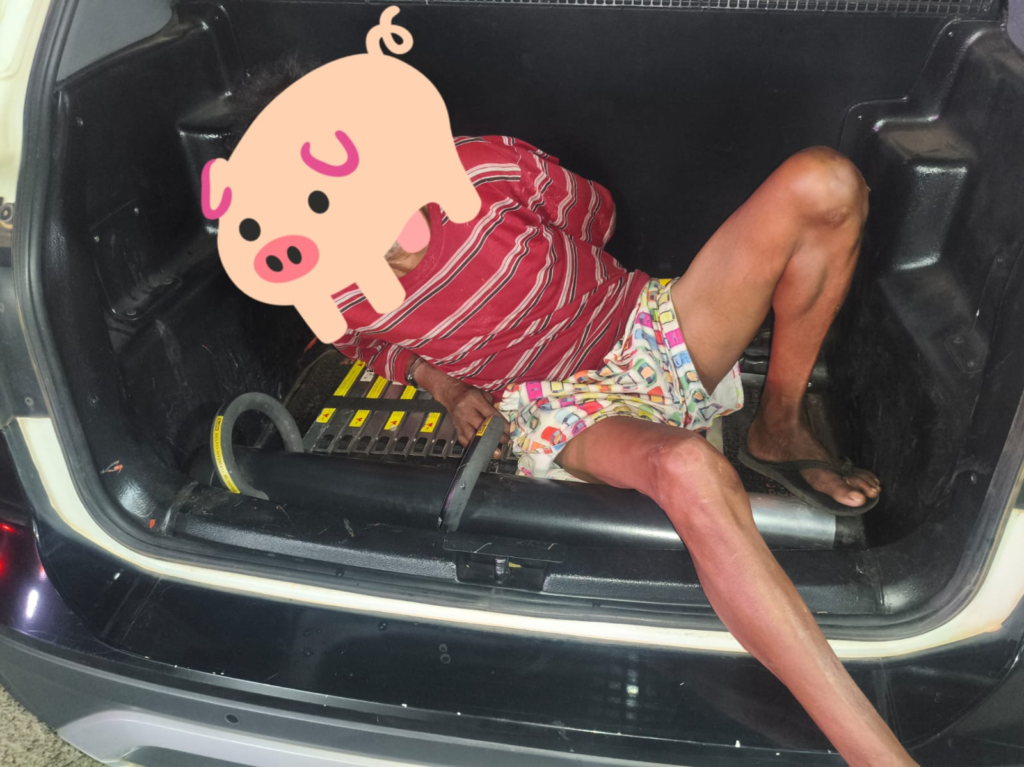 Com base nas características informadas, as equipes realizaram buscas e localizaram o suspeito em uma área próxima, onde ele tentava se esconder. No momento da abordagem, ele ainda apresentava comportamento inadequado.