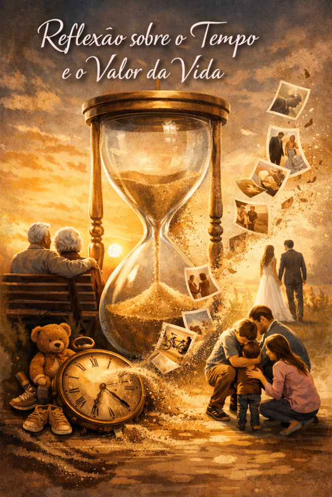 Vivemos em uma era marcada pela pressa, pela busca incessante por metas e resultados. O cotidiano nos engole, e na correria deixamos escapar aquilo que realmente dá sentido à existência. O tempo, silencioso e implacável, segue seu curso sem pedir licença. Enquanto corremos atrás de conquistas materiais, os pais envelhecem, os filhos crescem, formam suas famílias e partem. E quando finalmente paramos para olhar ao redor, percebemos que a vida passou diante de nós como areia escorrendo entre os dedos.